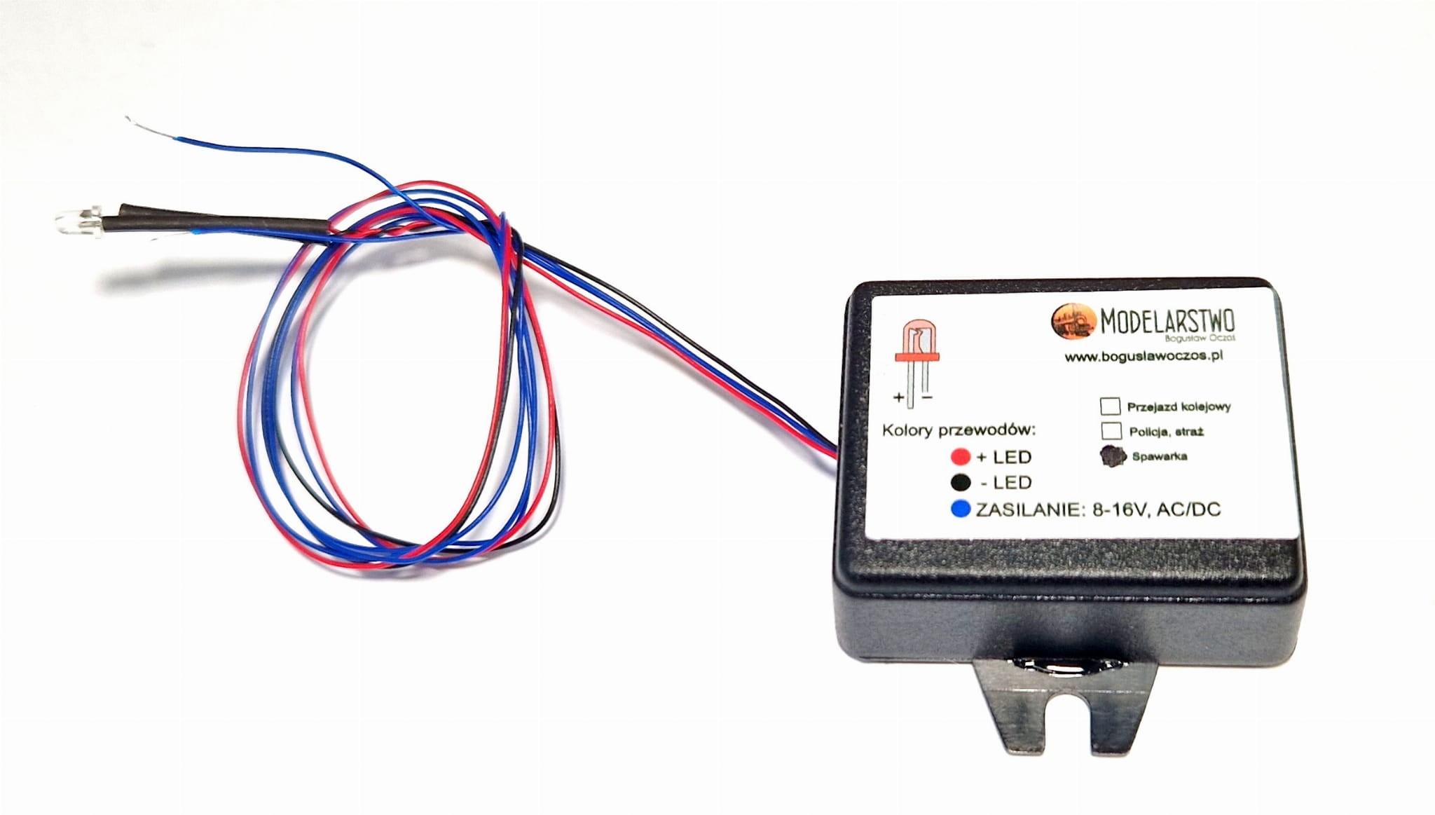 Moduł (niebieska dioda LED) imituje rozbłyski powstające w trakcie spawania łukowego.