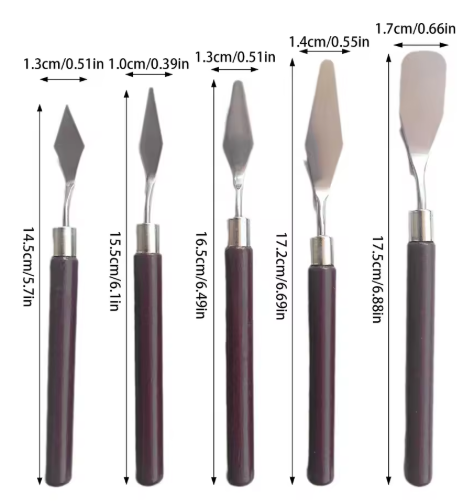 Zestaw pięciu precyzyjnych szpachelek modelarskich przeznaczonych do pracy przy modelach, miniaturach i elementach z żywicy, plastiku czy drewna. Idealne do nakładania, formowania i wygładzania mas szpachlowych, klejów oraz innych materiałów modelarskich.
