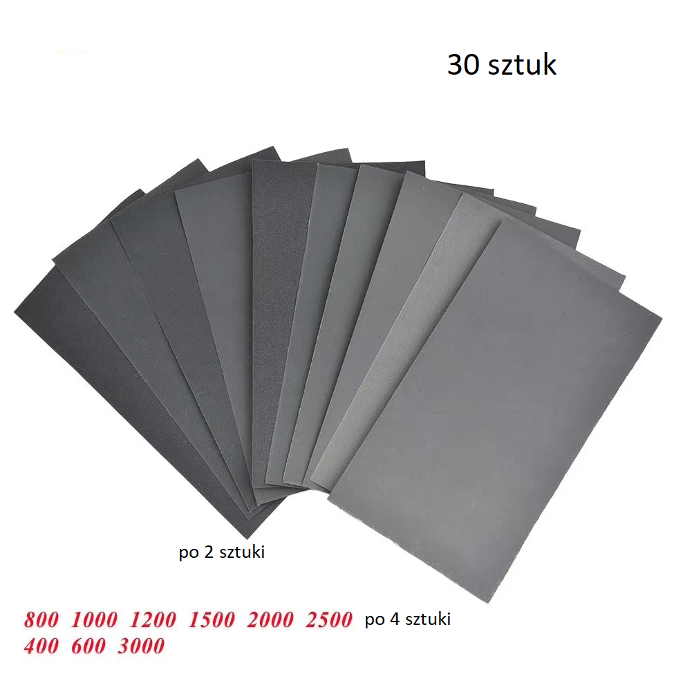 Zestaw papierów ściernych 30 sztuk